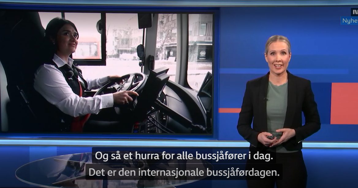 Kveldsnytt og NRK Østlandssendingen hadde 18. mars en lengre reportasje om en kvinnelig bussjåfør fra Irak. Hun heter Nadoa og kjører rutebuss for Nobina AS i Nedre Glomma-området. Hun trives svært godt i yrket og får svært gode skussmål fra både områdeleder og kollegaer.